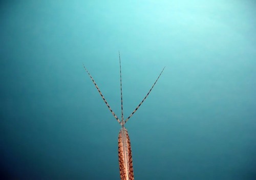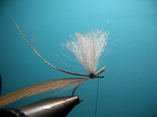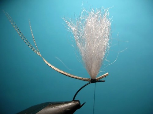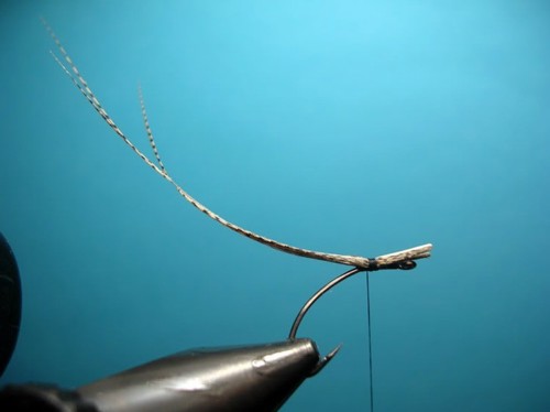 Brug en hacklefjer med lidt længere fibre end normalt, da dette giver en bedre flydeevne.